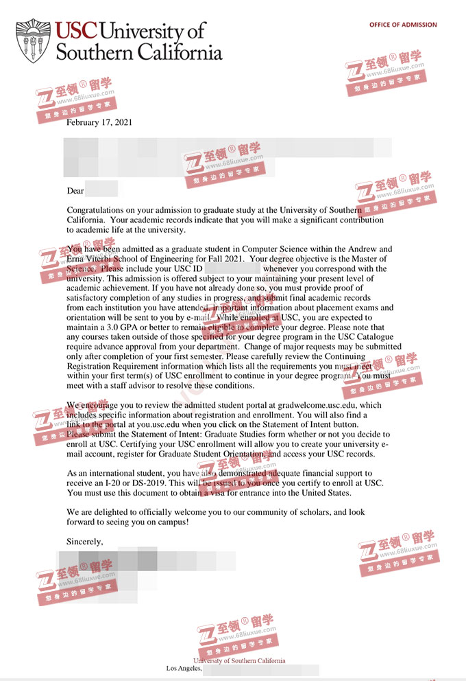 录取结果:USC,MS in Computer Science南加州大学计算机科学硕士录取