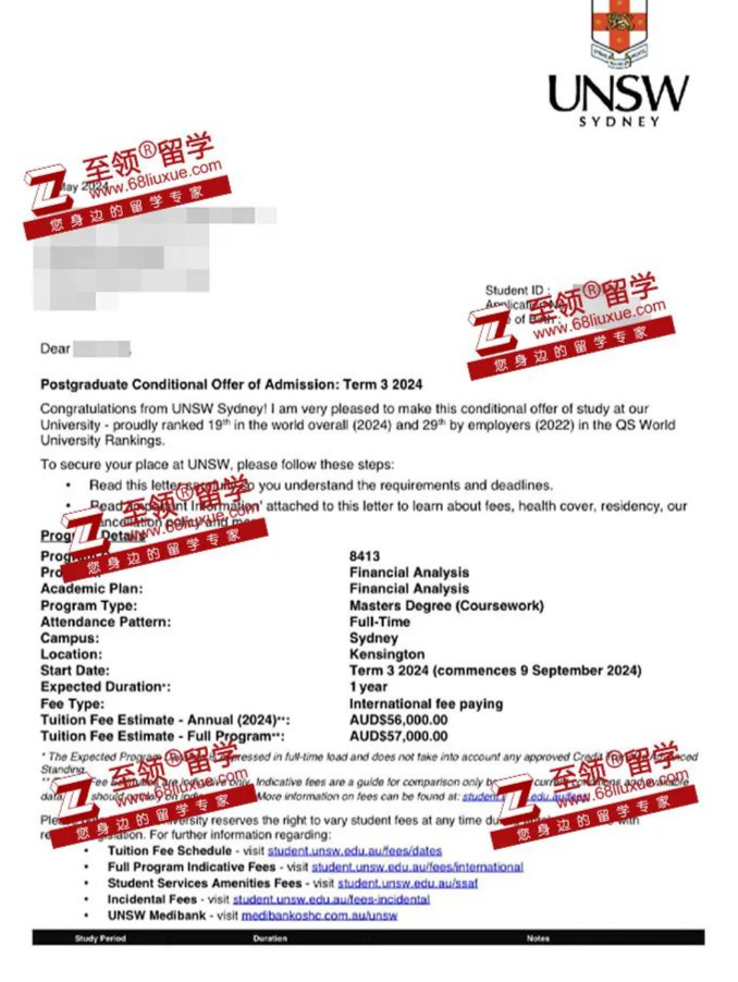 录取结果:The University of New South Wales,Master of Financial Analysis 新南威尔士大学金融分析硕士录取