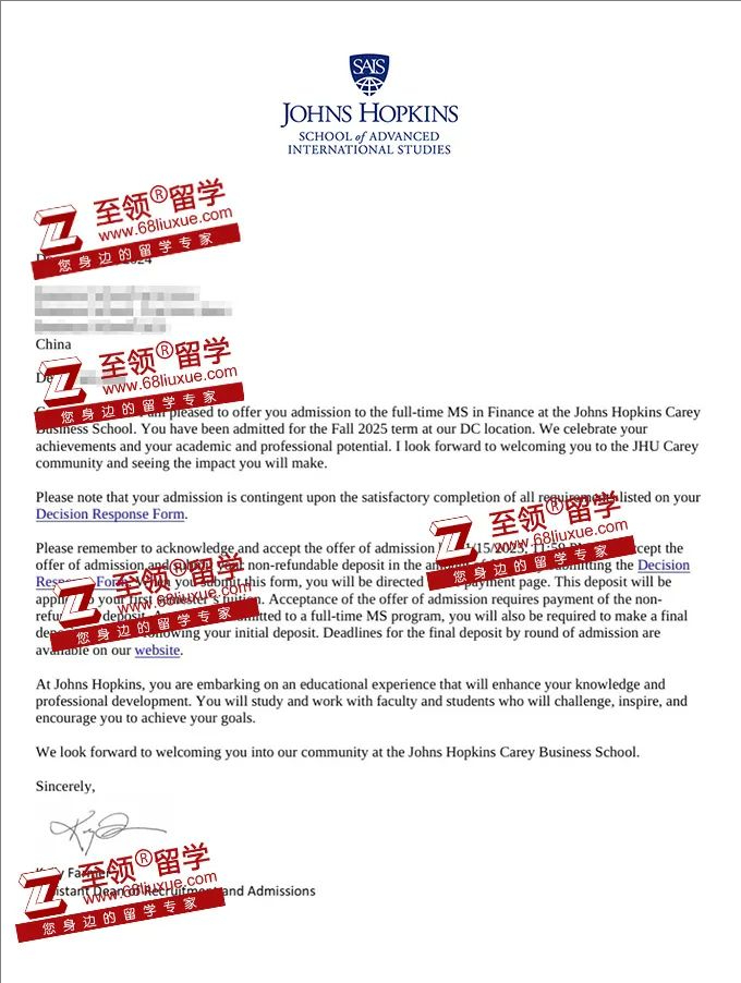 录取结果:约翰霍普金斯大学市场营销硕士录取