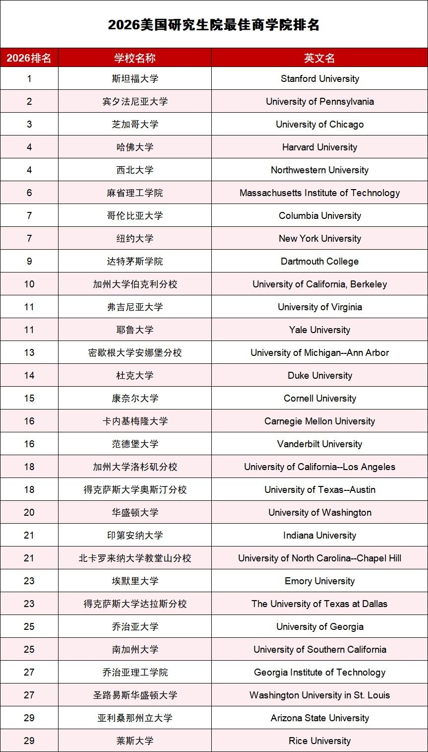 2026年全美最佳研究生商学院排名,波动较大!冠军换人,UCB成最大黑马: