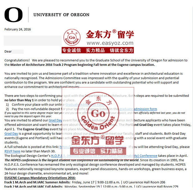 录取结果:俄勒冈大学建筑学专业硕士