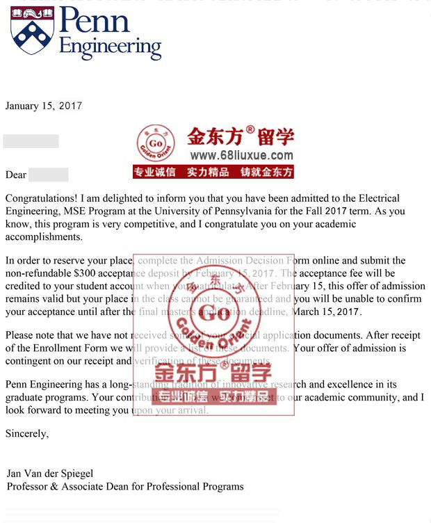录取结果:University of Pennsylvania宾夕法尼亚大学,MSE in Electrical Engineering电气工程硕士