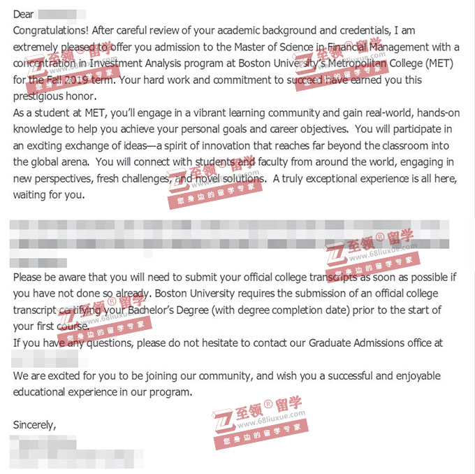 录取结果:Boston University 波士顿大学,Master of Science in Financial Management with a concentration in Investment Analysis program 金融管理硕士投资分析方向