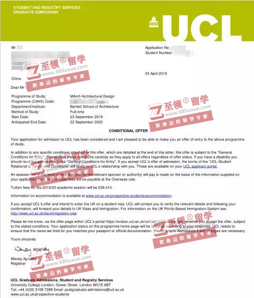 录取结果:UCL,Master of Architecture(ARB/RIBA Part 2)