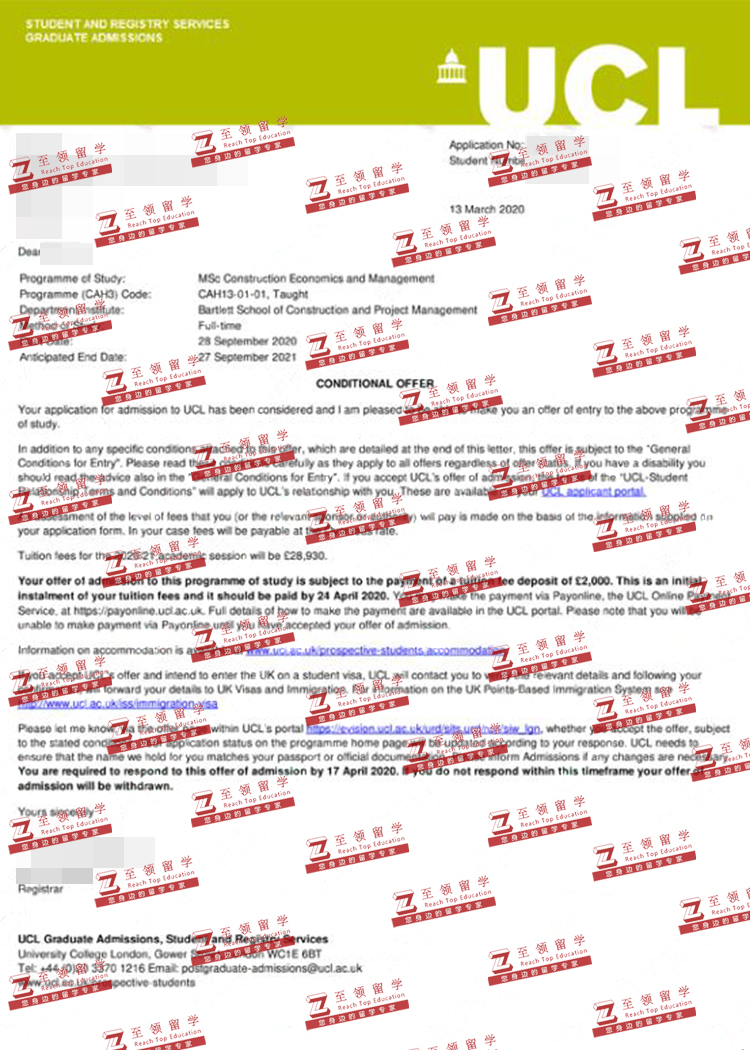 录取结果:UCL,MSc Construction Economics and Management,伦敦大学学院建筑经济与管理硕士录取