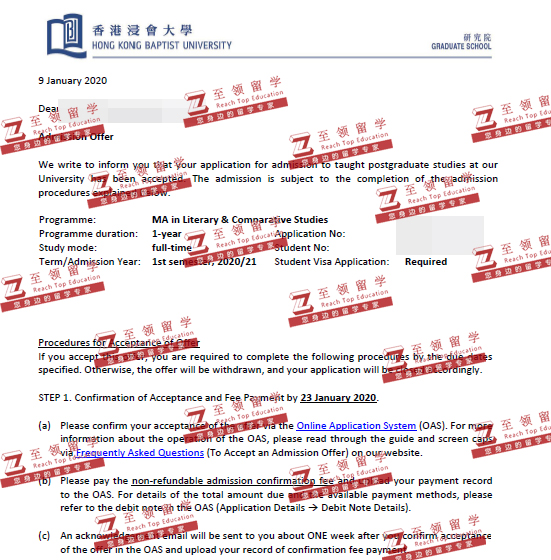录取结果:香港浸会大学MA in Literary & Comparative Studies录取