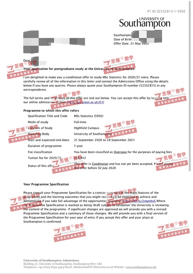 录取结果:University of Southampton,MSc Statistics南安普顿大学统计学硕士录取