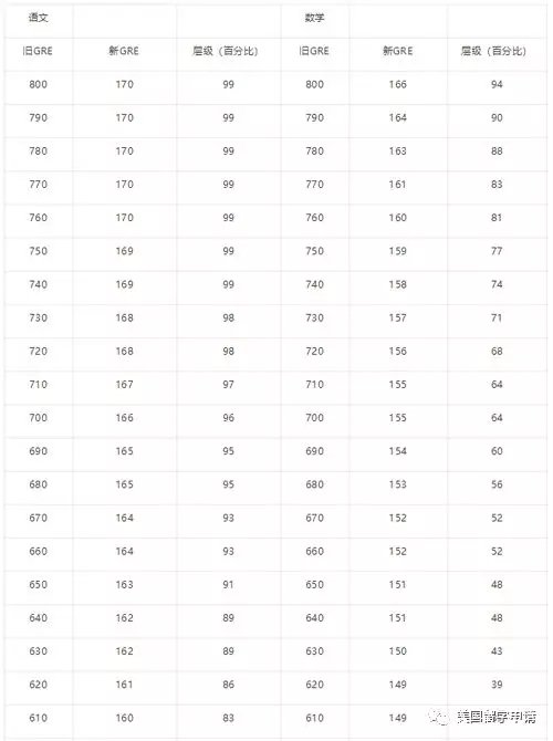 新型GRE分数对照表